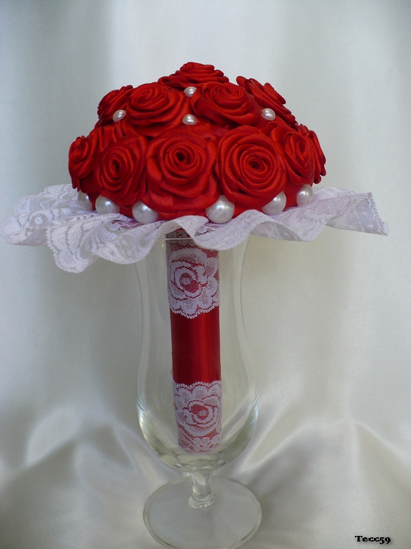Новый букет для невесты или просто для любимого человека. Состоит из атласных лент цвета айвори и граната в объятиях нежного кружева и листочков роз. Завершением служит ножка, украшенная декоративной лентой под стразы. Такой букет достойно заменит букет невесты из живых цветов и будет радовать долгие годы. К букету есть бутоньерка. Сообщение отредактировал Tecc59 - 28.9.2015, 23:04 |