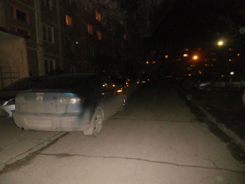 Около дома № 23 по ул. Устинова весь пешеходный тротуар с 1 по 4 подъезды заставлен машинами, никакого уважения к пешеходам, приходится идти по проезжей части и отскакивать на бордюр при проезжающей машине, фото не сделали, так как темно уже было.