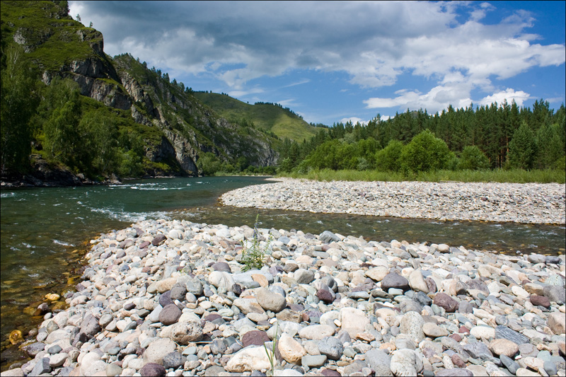 Встреча с Алтайской рекой Кумир Свело дыханье - вот она река, Летит, шумит, меж валунов петляя. Вода чиста, прозрачна как слеза, Как ледников слеза, что плачут тая. От неба и от зелени впитав В себя оттенок изумрудный, Несётся с гор, препятствия прорвав. В другой реке, продолжив путь свой трудный. -------------------- Зачарованно глядит