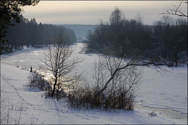 Дорога в рождество Нам было хорошо, тяжёлый лес склонялся С высоких берегов к заснеженному льду. Под снегопадом наш неровный след терялся Как призрак исчезал бледнея на ходу. Нам было хорошо, ступая осторожно Мы молча шли с тобой по стынущей реке. Едва окрепший лёд потрескивал тревожно Земля сливалась с небом где-то вдалеке. Чуть слышный звон синиц в потяжелевших кронах, Журчание воды в холодной полынье, Шальная вязь следов на белоснежных склонах… Нам было хорошо с рекой наедине Спускался снег с небес у нас над головами, Неподалёку где-то беззвучно время шло Чтоб не вспугнуть покой неловкими словами Шагали молча мы, нам было хорошо. Romantic Сообщение отредактировал Romantic - 6.1.2016, 17:59 -------------------- Зачарованно глядит