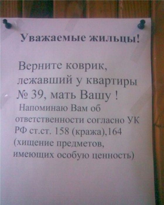 Проверяющий: — Скажите, сколько человек работает на вашем заводе? Директор: — Если честно, то только половина. . . Сообщение отредактировал Эникейщик - 23.5.2014, 14:14 |