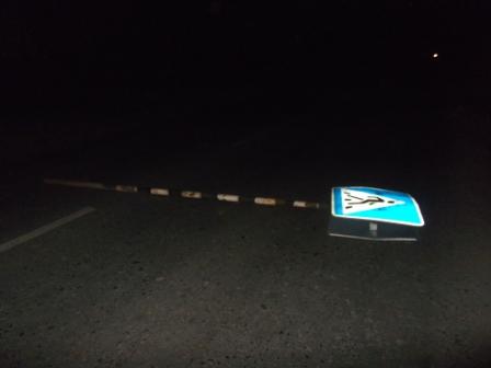 В 3 часа ночи на перекрестке Луначарского-Фрунзе в г. Нижняя Салда на проезжей части лежали вырванные знаки "Пешеходный переход" и березовое бревно. Мы остановились на дороге, потом подъехали сотрудники ДПС и были в шоке от увиденного. Представляете что могло бы произойти если бы машина на скорости налетела на бревно? |