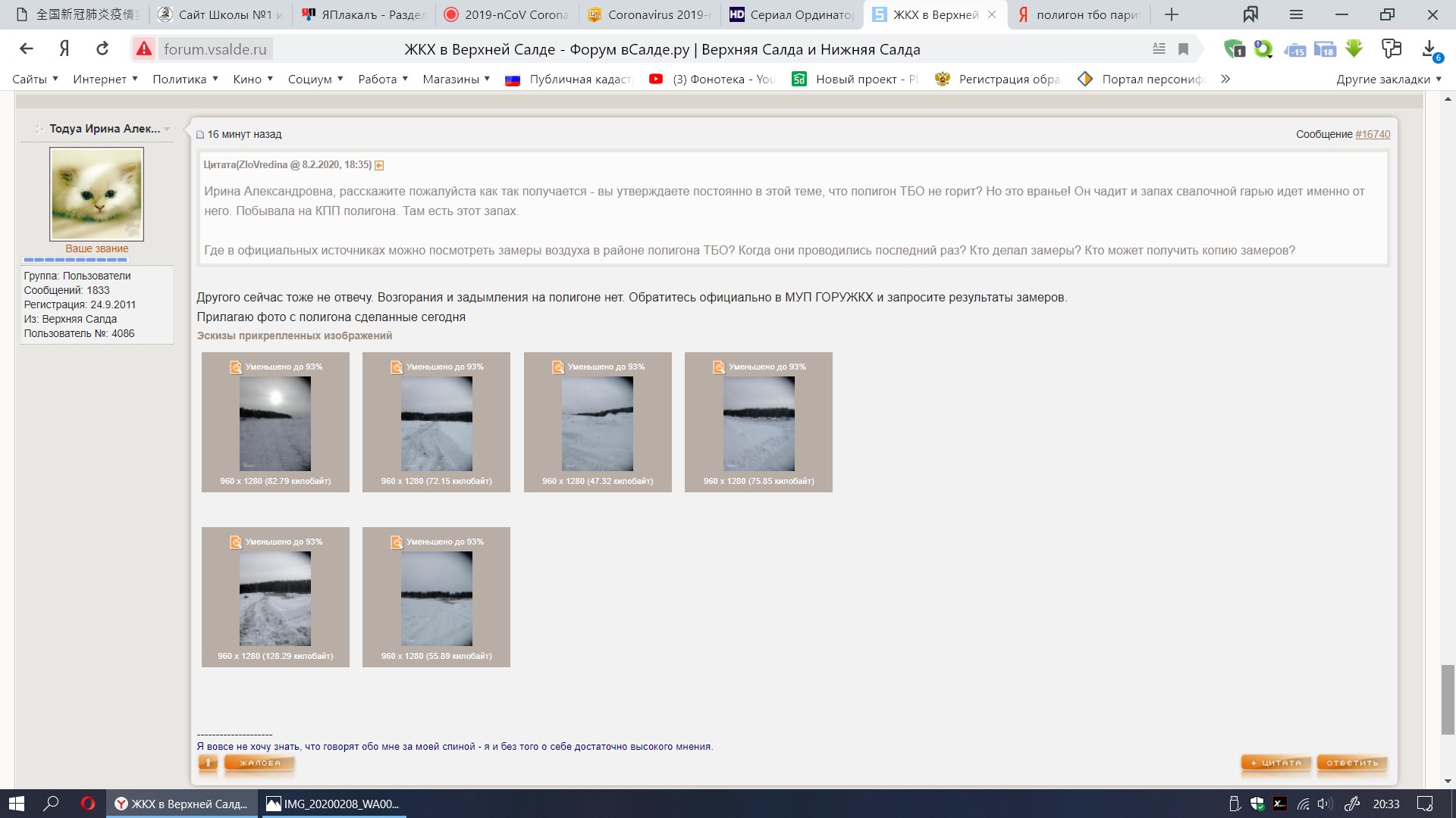 из моего ВК Цитата Тодуа Ирина Александровна (специалист по связям с общественностью в сфере ЖКХ Верхней Салды) в очередной раз удалила свои комментарии и прикреплённые фото, на этот раз про Верхнесалдинский полигон ТБО, фото от 08.02.2019 на форуме сайта vsalde.ru