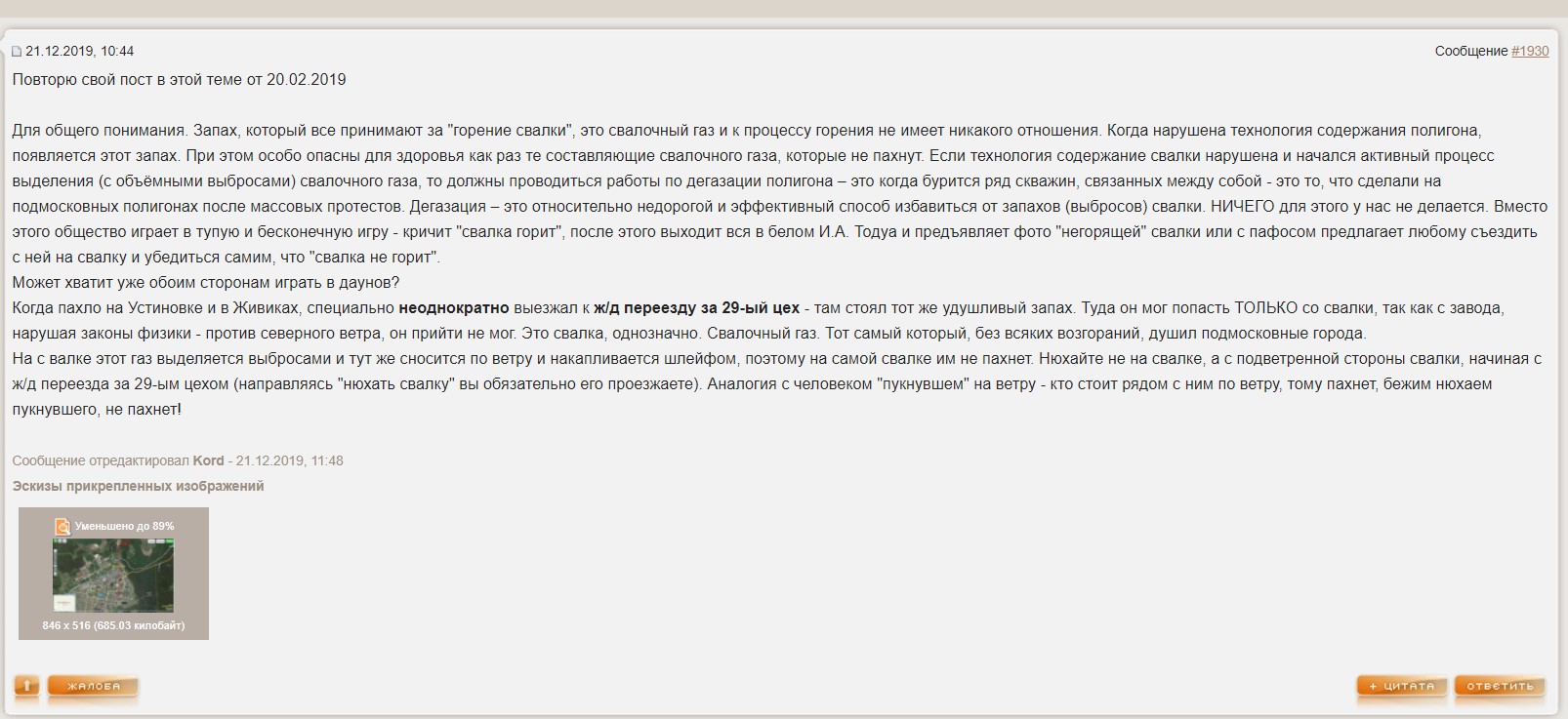 ![]() не пускаю за КПП, не положено. Если бы енот хотел помочь жителям, то давно бы дроном поснимал над полигоном тбо, но он с руки у всмпо кормится (контракт с пресс-службой на выкладку новостей на главной), поэтому не станет рисковать... Помимо этого - мало поснимать на видео. Надо делать замеры спец приборами, которые есть только у какой-нибудь лаборатории Роспотребнадзора. Скрин прикреплю, там всё правильно написано - открытого горения может не быть, а запах свалки будет Когда северный или северо-восточный ветер - неужели работники ПАО "Корпорация ВСМПО-АВИСМА" не чувствуют запаха "горелок", начиная от 16 цеха и дальше в сторону 90-го корпуса цеха 32? Если чувствуете - поздравляю, вы травитесь в этот момент канцерогенами с полигона ТБО. Иногда чувствую. Именно сегодня нет. На полигон въезжает каждый день куча машин договорись с кем нибудь чтобы не большой видосик сделали, естественно анонимно. Ну или дрона на крайняк себе купи не так уж и дорого. |
