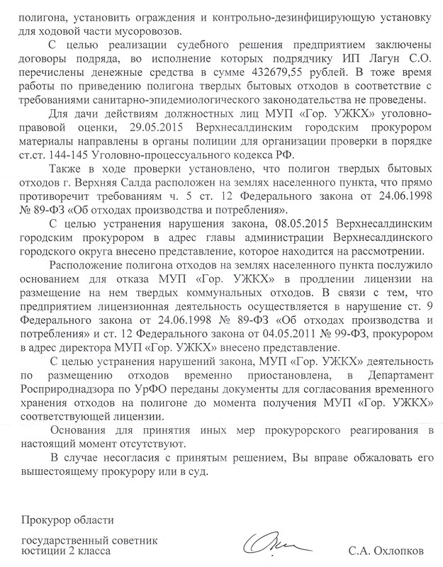 Если я правильно поняла, с мая 2015 г. глава администрации должен приостановить работу опасного полигона, лицензия МУП "Гор УЖКХ" не продлена -и что же тогда наша администрация так долго чешется?Озабочена только своими зарплатами и другими благами? Кондиционеры защищают их и их семьи от канцерогенов?