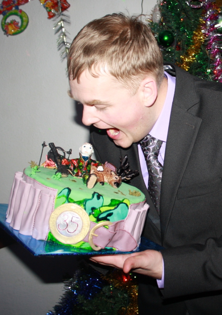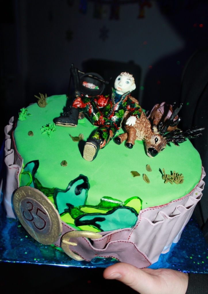 а потом то быт, то дети, то сломанный комп и вот я наконец-то созрела!!!Хочу сказать БОООЛЬШУЩЕЕ спасибо , Ксюше за тортище (в прямом смысле, вес более 5 кг ) Всё очень красиво, искусно, экспонат действительно похож на моего мужа А шоколадный бисквит с слоеными коржами, безе и грецкие орехи м-м-м пальчики оближешь !!!Вот обещанный разрез ![]() На память оставили рюкзак и медаль с цифрами "35" не съели ![]() А вот и юбиляр с подарком ![]() Ещё раз С-П-А-С-И-Б-О , успехов на данном поприще! Много заказов! Новых и прекрасных идей!И с нас заказ !-------------------- |