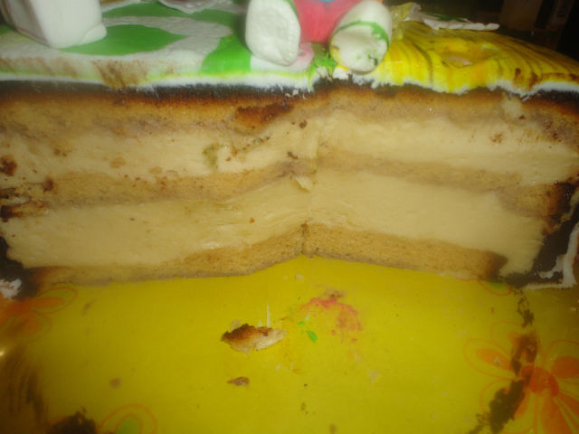 ну, откровенно говоря "кусочек торта" не настоящий, а укташение из мастики.