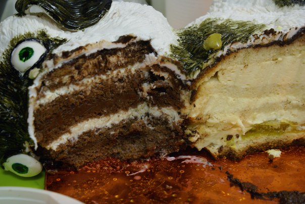 много взбитых белков в тесте. бисквит пузырчатый и нежный и когда разрезаешь он реально шуршит)))