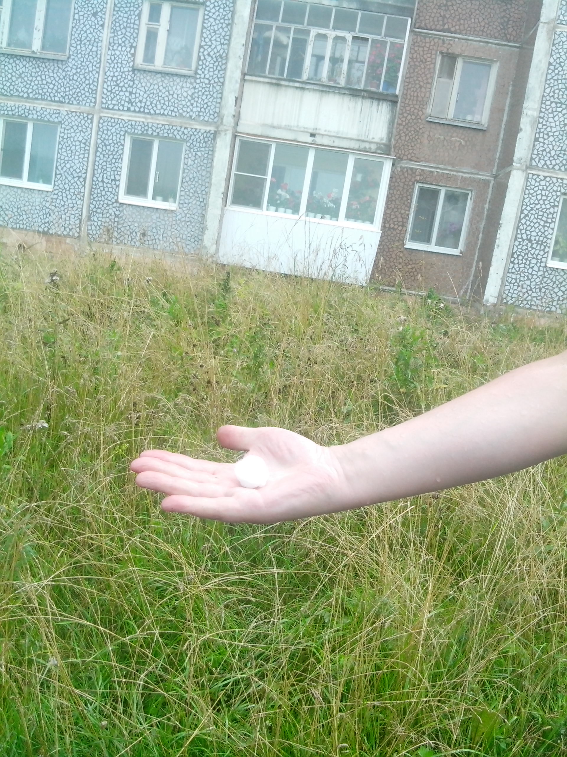 Мне на балкон несколько небольших градин размером с горох залетело, но по дребезгу было слышно, что есть и бОльшие. Машины стояли прятались под деревьями) VkontakteCpy мне прислал Первая сделана из Скифа на пятаке, когда град только начался. А вторая ближе к почте минут через 5-7 после окончания града. Просто взял в траве первый попавшийся и сфоткал. -------------------- ![]() |