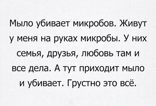 Дневник унитаза. Ну вот, наконец, началась моя большая можно сказать жизнь. Сегодня привезли в квартиру, выделили комнатку. Небольшая, но светленькая и чистая. Есть соседи. Поболтал с Туалетной Бумагой. Мягкая, покладистая девушка. С хозяевами тоже пока не знакома. Волнуемся. * Я в шоке. Приходила Женщина. Ни слова, ни полслова - сразу уселась мне на колени и натурально обгадила. Нет, нет, до сих пор не могу прийти в себя. Куда я попал, что за дикие нравы? Неужели мне суждено провести с этими людьми всю мою жизнь? Тешу себя надеждой, что остальные домочадцы человечнее, чем эта... Видели бы вы, что она вытворяла с бедняжкой Туалетной Бумагой. * Рзве об этом мечтал я, пролеживая бока на складе? Разве мог я представить, какой кошмар меня ожидает? Мои хозяева - грязные, бездушные скоты - обращаются со мной, как с рабом. Почему я не попал к людям светлым, чистым и душой, и... и всеми частями тела? Ведь не все же они такие! Я-то еще держусь, но милая, нежная моя Бумаженька тает на глазах. Они ее просто используют, хладнокровно и расчетливо. * Познакомился с Презервативом. Изможденный, помятый. Жалкое существо. Рассказывал совершенно жуткие вещи. Ни за что бы ему не поверил, если бы не видел его насквозь. Может быть, он просто бредил, его явно чем-то накачали. Изверги. * Унесли то, что осталось от Бумажи. На ее место поселили новую. Молодая, восторженная. Как она похожа на юную Бумажку! Представляете, оказалось, что они тезки! Принялась распрашивать о хозяевах, строить планы. Я едва не разрыдался. * Не могу больше оставаться в этом доме. В доме, где тебе не просто плюют в душу, тебе в нее... О Боже, какие они все-таки бесчувственные! Вчера поздно ночью пришел хозяин, встал передо мной на колени. Обнял. Душа моя дрогнула, я готов был простить ему все, даже прокисший суп и чайную заварку. Но вместо душевных излияний я получил очередную порцию мерзостей и гадостей. Нет такой низости, на которую бы не были способны эти созданья. Если бы я не был так крепко привязан к этому месту - ноги бы моей здесь не было. * Ночь напролет говорили с Бумагой. Она в чем-то права. Мы действительно приносим пользу. Действительно, видим Их не с лучшей стороны. Но как это горько, когда твоя работа так тебе противна! * Презерватив рассказывал правду. Сегодня я смог в этом убедиться. Какие-то незнакомые люди, стыдливо прикрыв меня крышкой, принялись скакать на мне, как безумные. Не прошло и двух минут, как я был совершенно разбит. Нелепая жизнь - нелепая смерть. Надеюсь, в следующей жизни я буду более удачливым унитазом. Своровано с просторов инета)) |