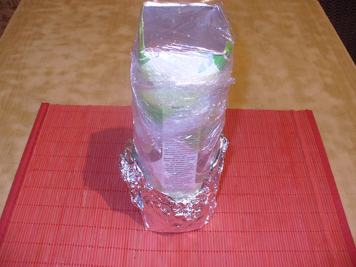 когда будете ставить пакет в холодильник - снимите пленку обызательно. а то будет эффект термоса и желатин не застынет. т.е. ставить просто в пакете из под сока