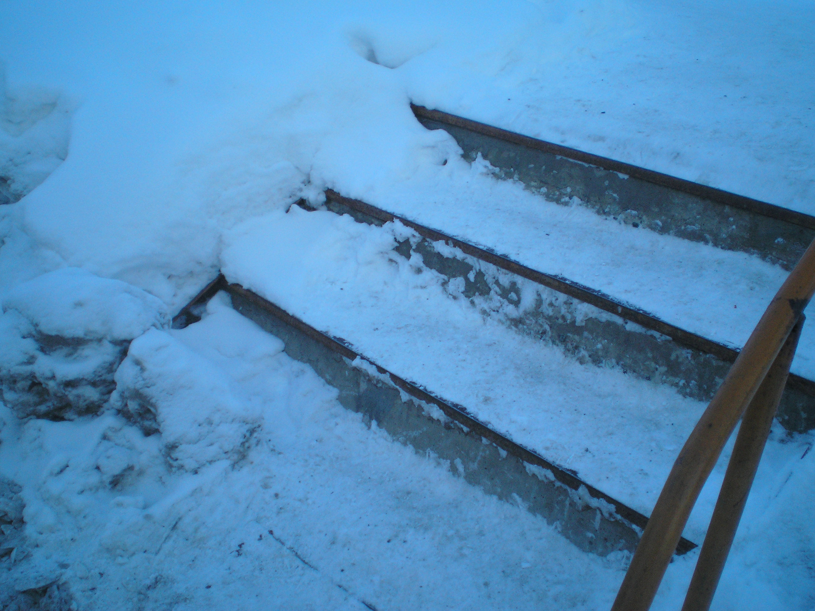 А если взрослый слетит- кого за ноздри тянуть?Сегодня ступеньки (наконец-то!) были почищены. Как говорится, "не прошло и полгода"...