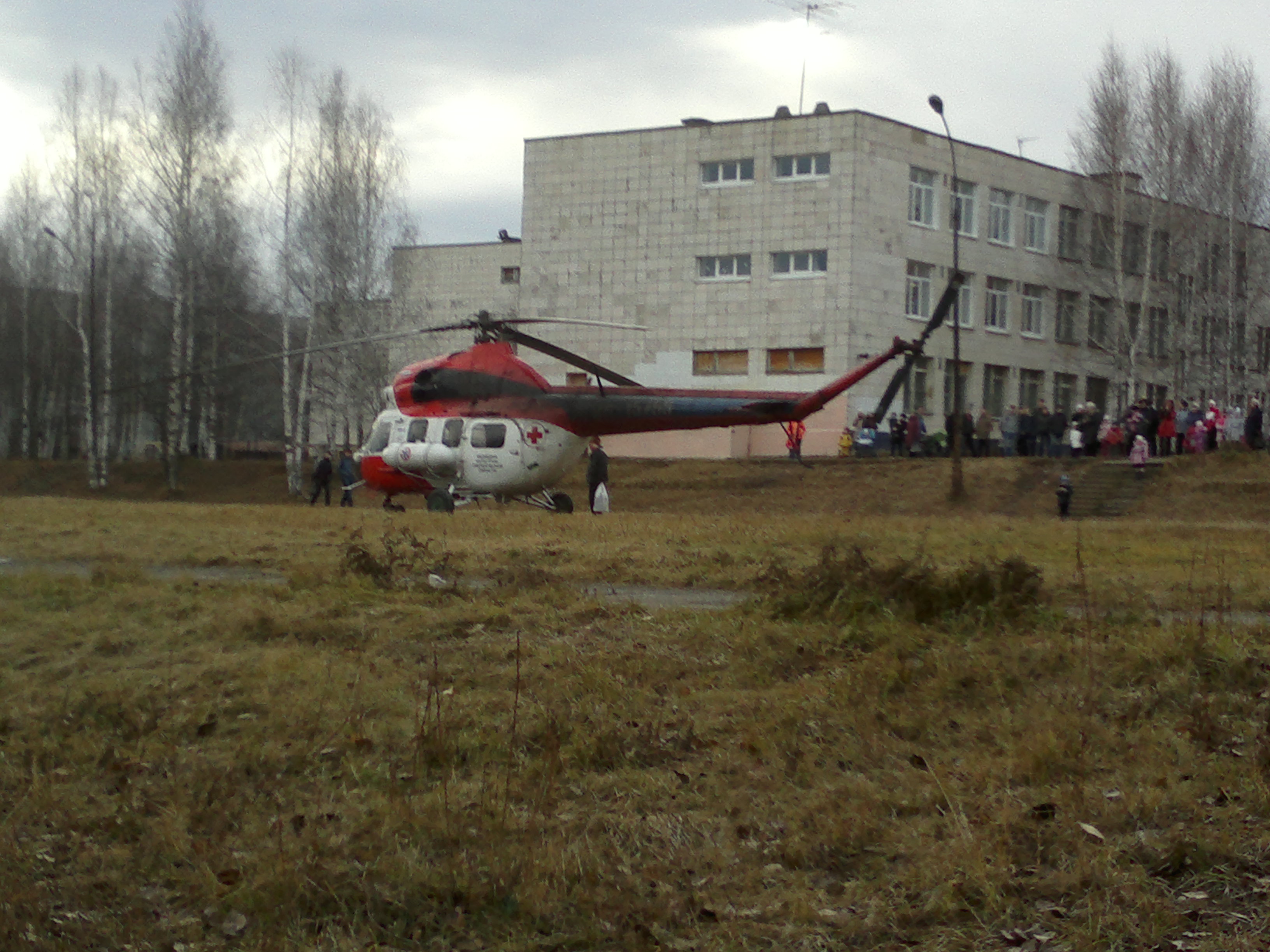 Скорая подъехала к вертолёту, открывали двери и у вертолёта и у скорой. Больше ничего видно не было, вертолёт близко окружили дети разных возрастов.