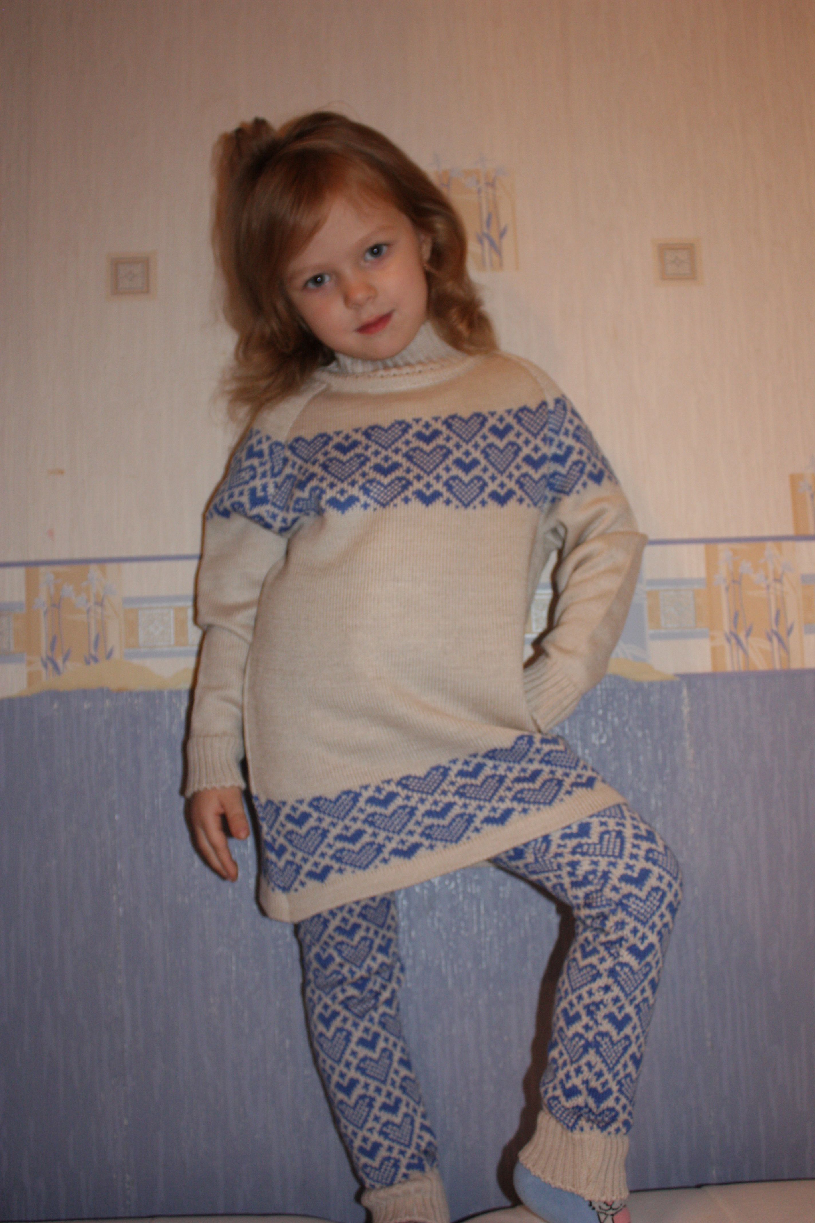 Костюмчик тот же в другой расцветке, вязался для девочки побольше нас...
