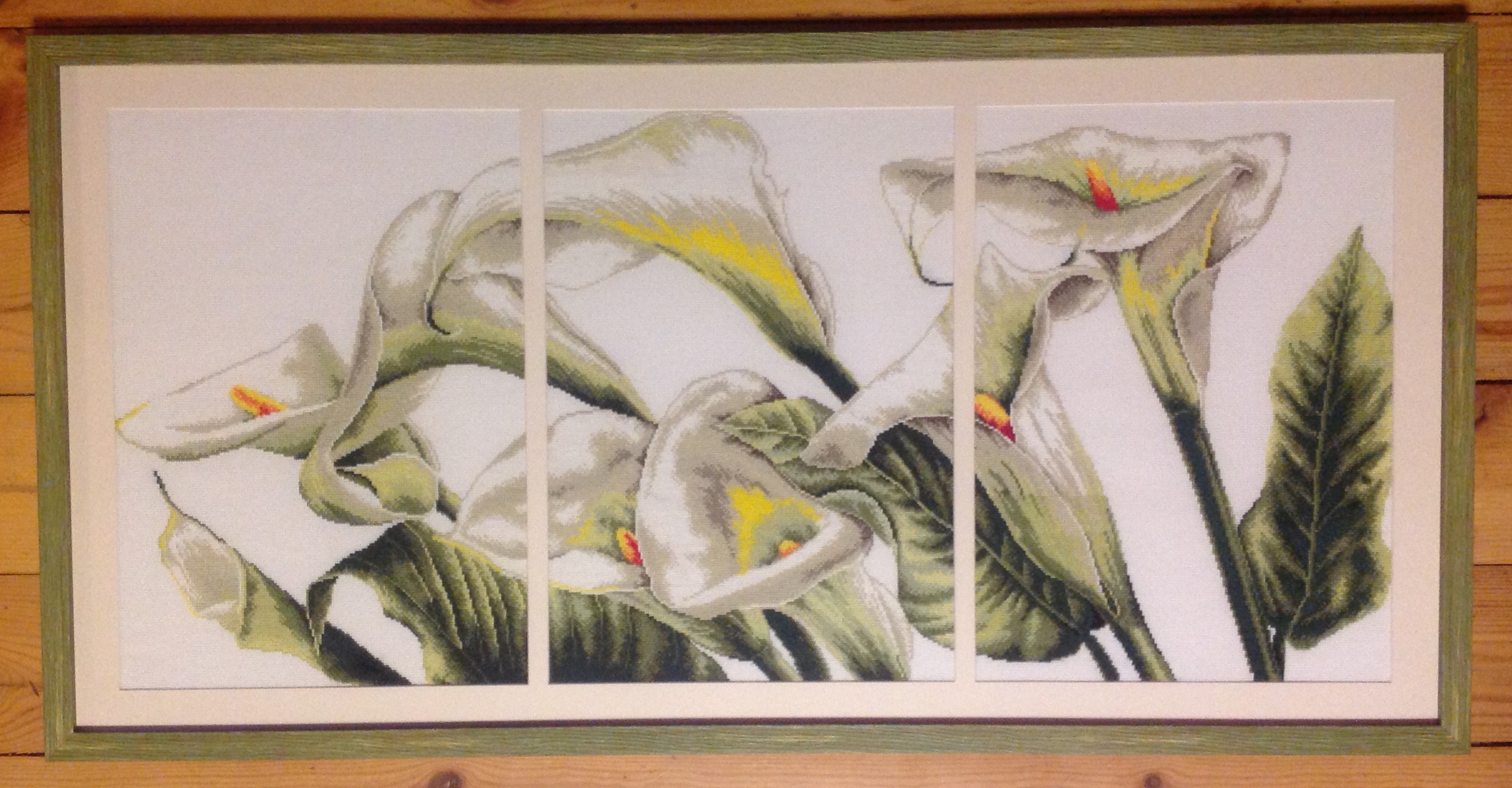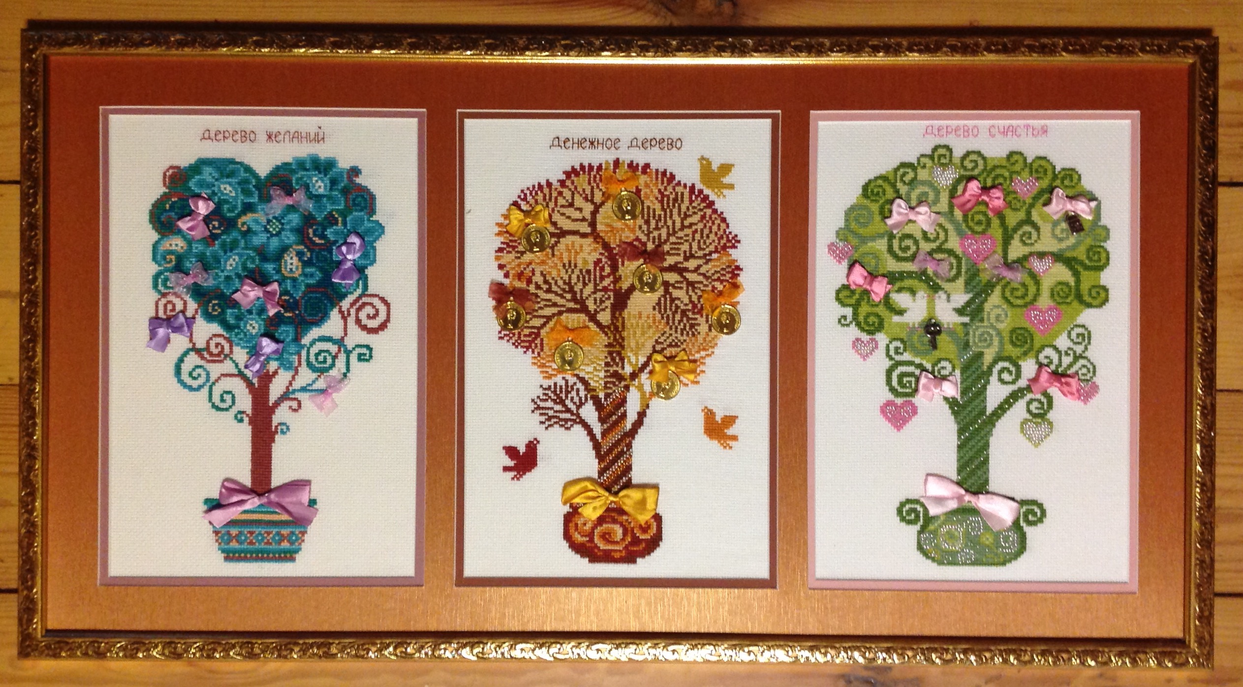 Триптих. Вышивка. Паспарту с тремя окнами. Багет.