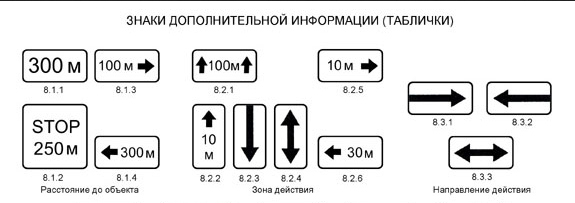 Нажмите для просмотра прикрепленного файла8.3.1 - 8.3.3 "Направления действия". Указывают направления действия знаков, установленных перед перекрестком, или направления движения к обозначенным объектам, находящимся непосредственно у дороги.