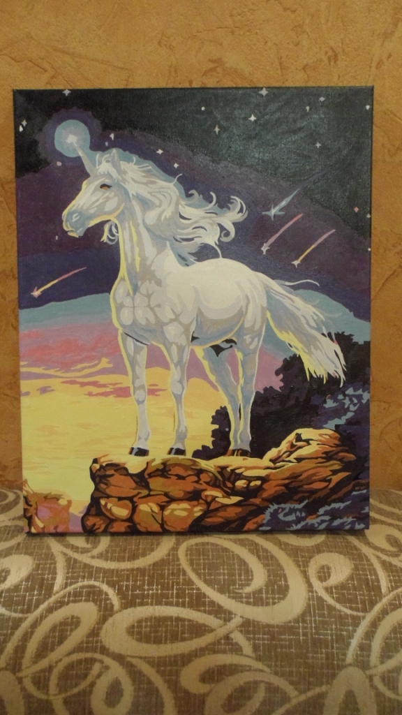 Это оочень прикольная и блестючая картина. Себе взяла, но еше руки не дошли в работе две рисовальные картины, оторваться не могу. Там много камешков как сваровски , а картина уже нарисоанная, снимается пленочка , остается клейкая поверхность , на которую наносятся камушки по цвету. Видела готовую, глаз не отвести. Красотища.
