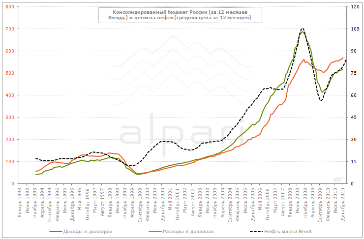 Расстрою я вас, граждане, до невозможности. Нефть для российского бюджета все "нулевые" стоила $20 и $27 (с середины 2000-ых) за баррель, остальное "стерилизовалось" в Стабфонд и не попадало в экономику и в рост несырьевого ВВП. Иначе бы экономику просто разорвало от бешенного количества необеспеченных денег, да и "подушку" - благодаря которой экономика не рухнула в кризис - не накопили бы.©