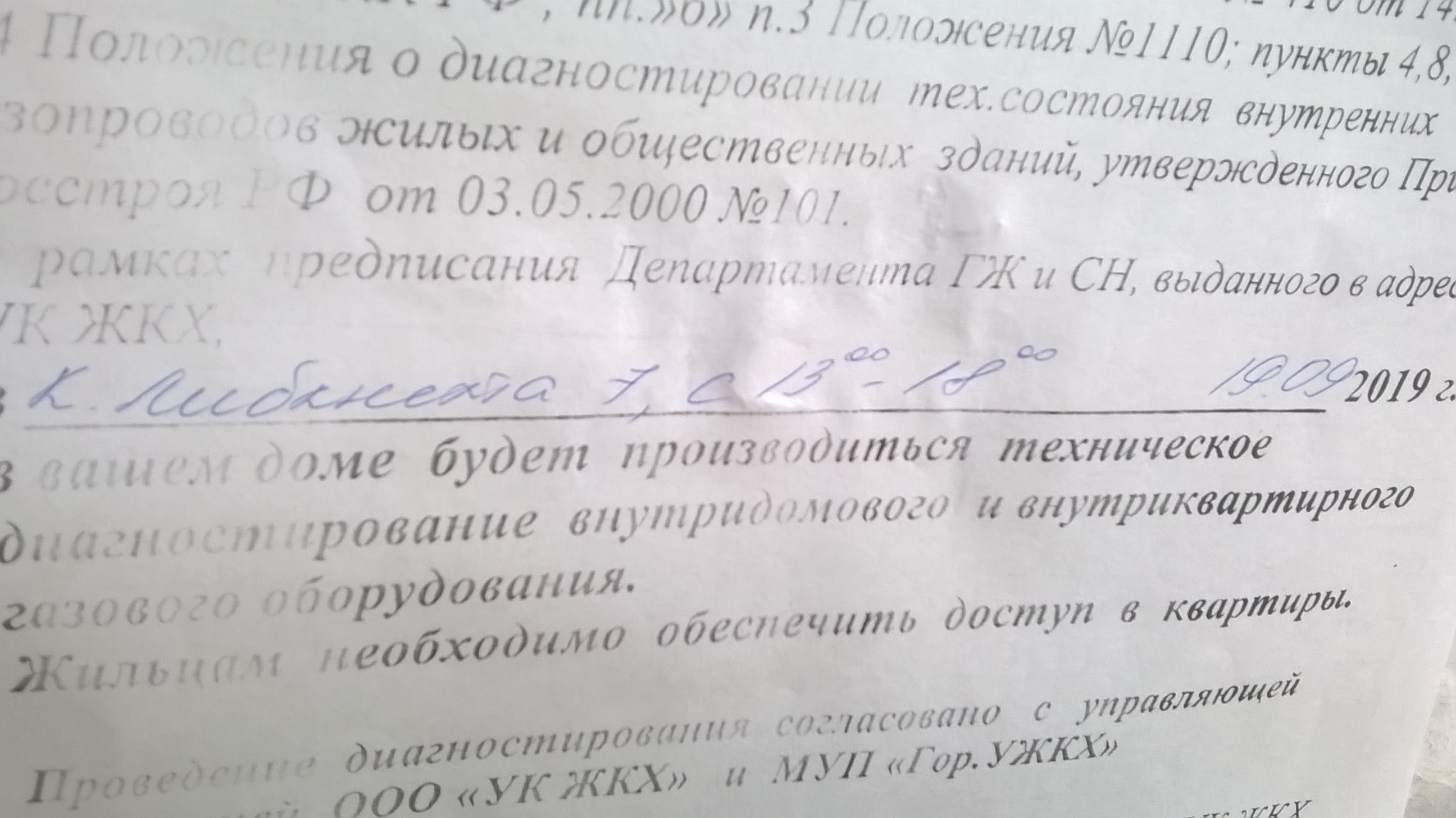 Е мое! Вонючий случай! Летом для чего отключают горячую воду!? Устинова 27, горячей воды то нет! Не говоря уж про отопление! Звонишь диспетчеру с вопросом где ж вода? Ссылаются на об"явление котрого нет! Только что специально сходила и сделала фото! И да! Уважаемые работники управляющих компаний! Нет у нас времени для того что бы стоять возле доски об"явлений и ждать - когда ж вы его повесите!