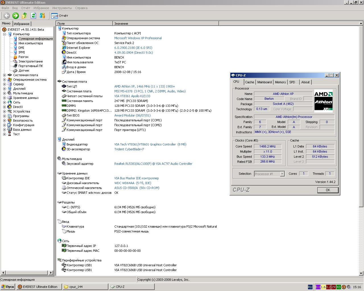 Кароче пока вы тут спорили, не впадлу нам было найти плату на кт133 и Бартон...2штуки ) Действительно все завелось на шине 133, и CPU-Z корректно показала тип процессора... Вот скрин...