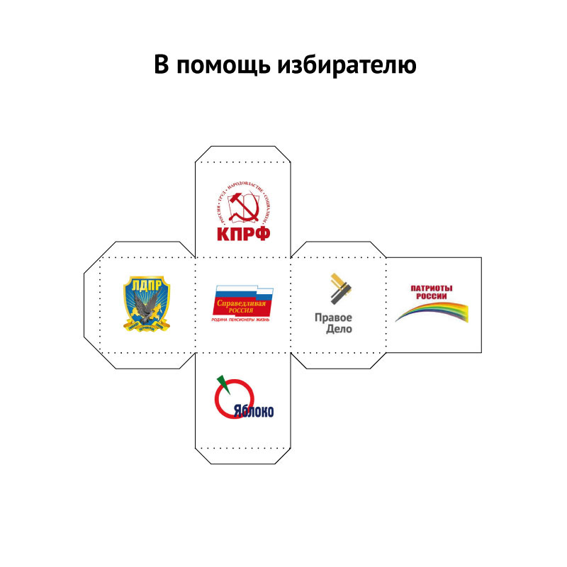 распечатываем, вырезаем, склеиваем кубик и он подскажет за кого идти голосовать