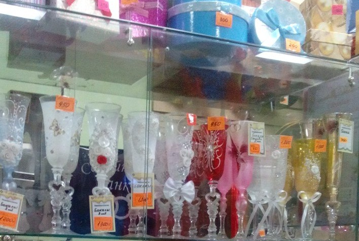 Дак по фоткам и видно, почему цены разняться. По 350р. китайский ширпотреб, намалеванный на стекле краской. У моей подруги на свадьбе к концу застолья краска отвалилась. А в магазине - ручная работа с аппликацией и объемными цветами. Я такие взяла - уже год с мужем свои семейные даты с ними отмечаем. Это все равно что можно купить шкоду, а можно и geely - Издалека спутать можно