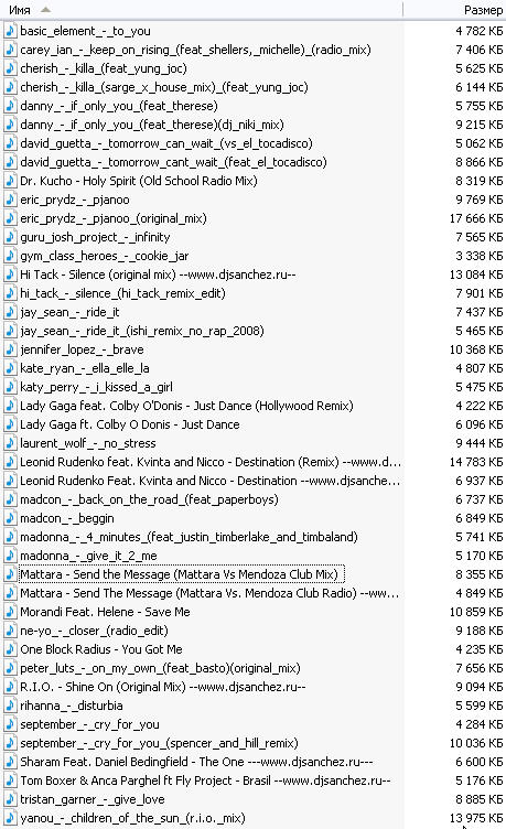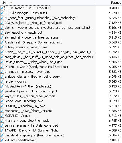 Также есть относительно старые песни (из относительно старого hot 30, когда были популярны ещё morandi - angels, и dj smash - moscow never slips). Список всех песен на скиншоте: