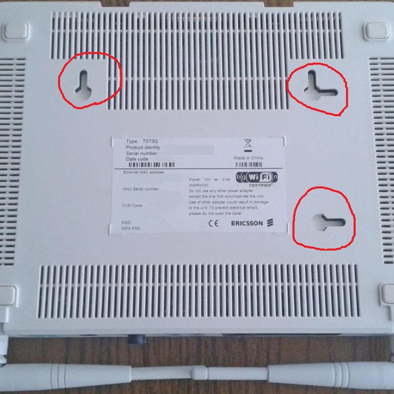 2. Я у роутера не могу найти отверстия на задней стенке, чтобы на стену его повесить. Роутер Эриксон В инструкции написано, что настенное крепление выполняется при помощи шурупов. Я не могу найти куда потом закрепить
