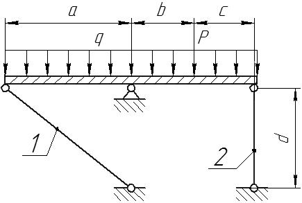 Нажмите для просмотра прикрепленного файлаОтсюда имеем 4 неизвестных и три уравнения равновесия. Следовательно, данная система является один раз статически неопределимой и для ее решения требуется составить одно дополнительное уравнение перемещений.