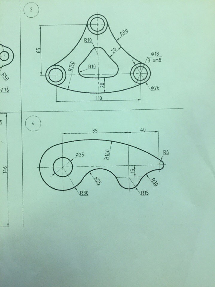 На втором фот надо построить деталь, не убирая линии построения - это задача на сопряжения. Также жду ответ