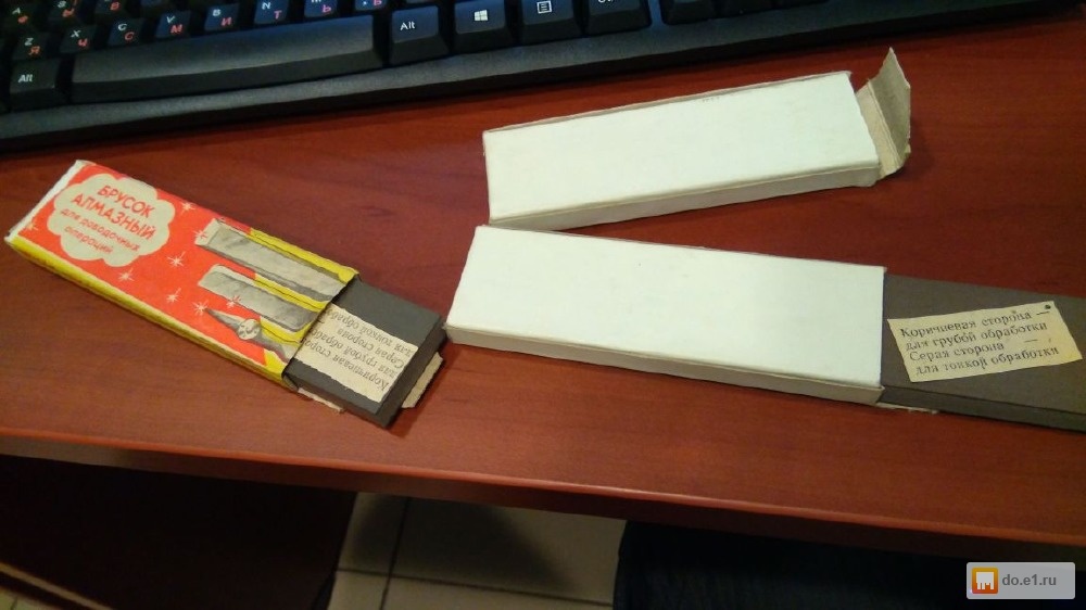 Алмазный брусок доводочный двусторонний. Новый производства СССР 1985 года. Позволяет заточить нож до состояния бритвы. (Ресурс практически вечный)
