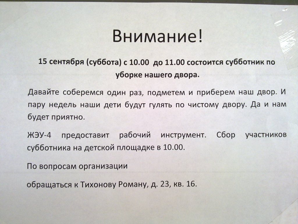 Мне интересно, как прошел ваш субботник. Много жильцов вышло?