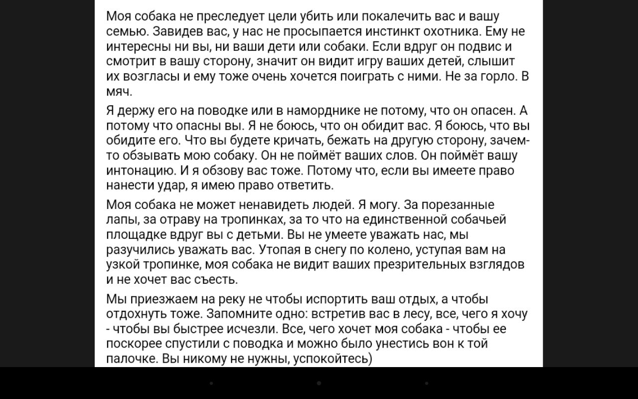 А Вы, автор темы, не реагируйте на выс..ы стаи. Чего ждать от собак, когда люди того хуже. И любая воспитанная собака вполне способна дотерпеть до места выгула, посто хозям лень далеко ходить, у подъезда ж лучше гадить. А потом ещё скулят, когда терпение у некоторых заканчивается и, они бросают отраву. Я их не оправдываю, жестоко, но понять могу.