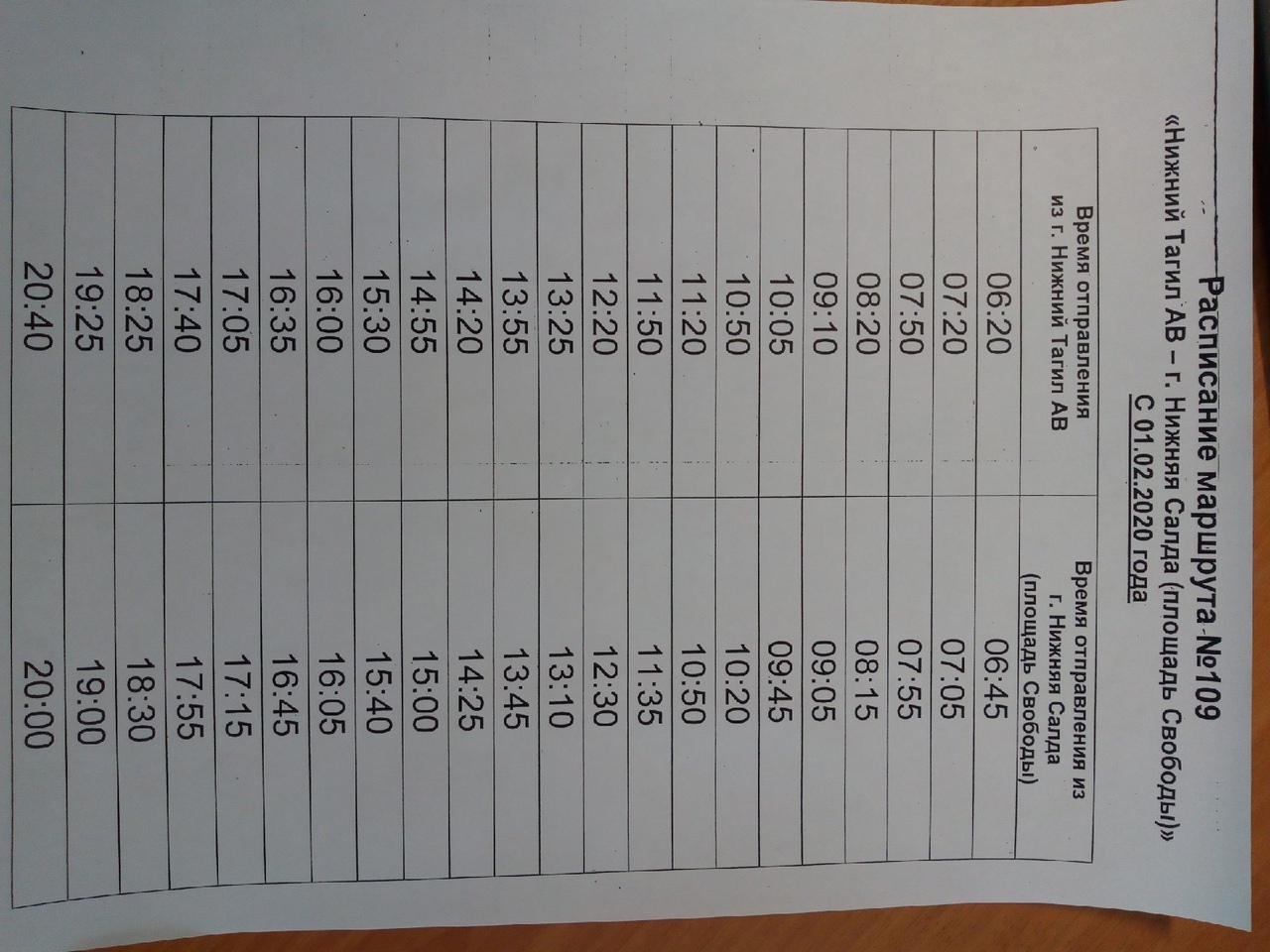 Подскажите расписание автобуса Тагил-Салда