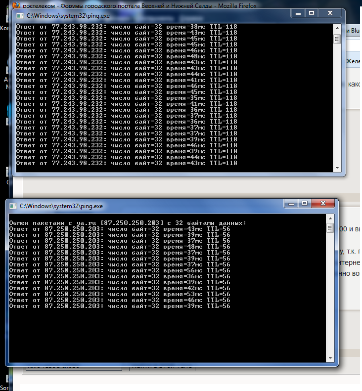 Ответ от 77.243.98.232: число байт=32 время=119мс TTL=113