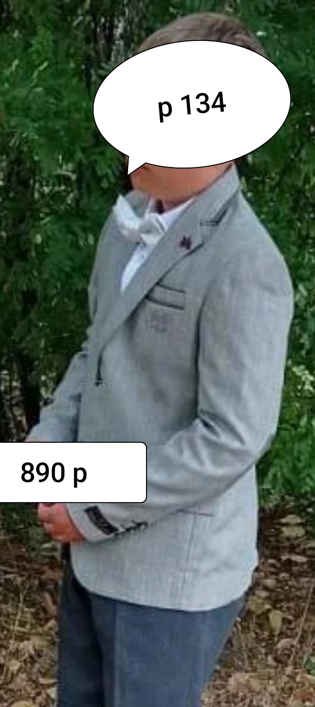 пиджак 890 р, брюки новые есть р 128 серые, на резинке