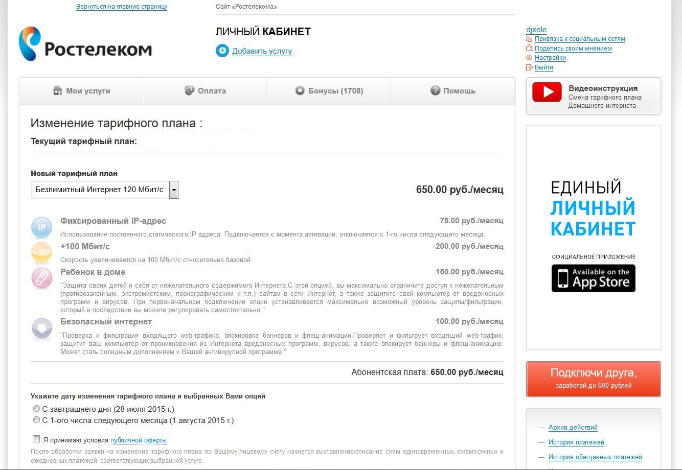 Не успел распрощаться с Ростелекомом. Вчера зашел в личный кабинет, смотрю новые тарифные планы появились. Там через личку перешел на новый ТП 60Мбит за 500 р. Что интересно, ну я думаю так и должно быть, переход на новый ТП сейчас можно осуществить на следующий же день, а не с первого числа месяца. Сегодня с утра зашел в личку в названии тарифного плана - нет доступной информации, скорость не изменилась(10Мбит), после работы буду тестить и, в случае чего, требовать своё.