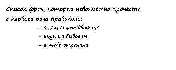 На радио - конкурс. Задача - придумать слово, которое не существует в русском языке, затем - придумать предложение, в котором оно обретет смысл. Ди-джей разогревает слушателей, подзадоривает - ведь главный приз - сковородка от Тефаль. Вялые первые пару попыток неудачны. Наконец, поступает звонок. Парень говорит: - Мое слово - Ш О Л Б. Ди-джей: - Я чувствую, победа близка, такого слова реально нет в русском языке, ну а предложение у вас есть? - Конечно. ШОЛБ ты на х*й... ...Обрыв связи, ди-джей с разбежавшимися в разные стороны мыслями пытается одновременно и извиниться и продолжать явно уже заваленный конкурс. Очередные пару неудачных попыток. Снова звонок: - Добрый вечер, я предлагаю слово ЭЦНОВО. Ди-джей, воспрявший духом: - Я предчустсвую победу. Надеюсь предложение у вас готово? - Ну, естественно. ЭЦНОВО я. ШОЛБ ты на х*й...