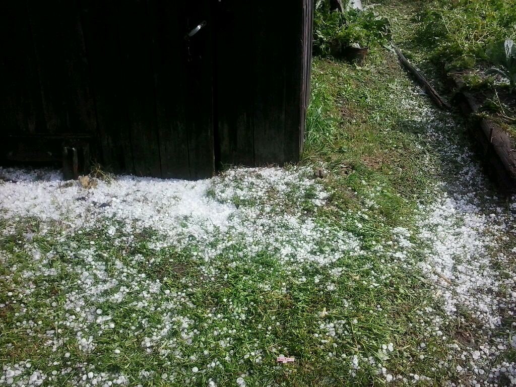 Нам в 1 саду повезло, видать. Град был крупный, но не как на фото, и прошло быстро - видать зацепило только краем. Но когда гроза надвигалась шум был такой странный с города, как будто железо мнут. Ещё думала, что за шум такой странный - теперь ясно что к чему.
